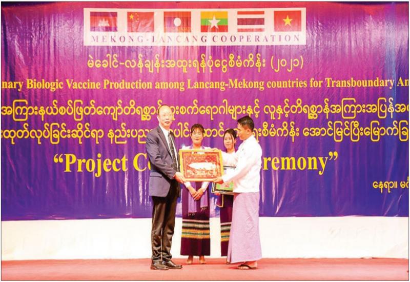 A ceremony was held on 8 April at Mingala Thiri Hotel in Nay Pyi Taw to announce the successful completion of the Special Fund Project 2021 for the production of cross-border animal infectious disease vaccines between the Mekong-Lancang countries. The Livestock Breeding and Veterinary Department implemented the project, attended by Union Minister U Min Naung of the Ministry of Agriculture, Livestock and Irrigation, Deputy Minister Dr Aung Gyi, Second Secretary of the Embassy of the People’s Republic of China to Myanmar Mr Zheng Zhihong, along with representatives, directors-general, rectors, and project officials.