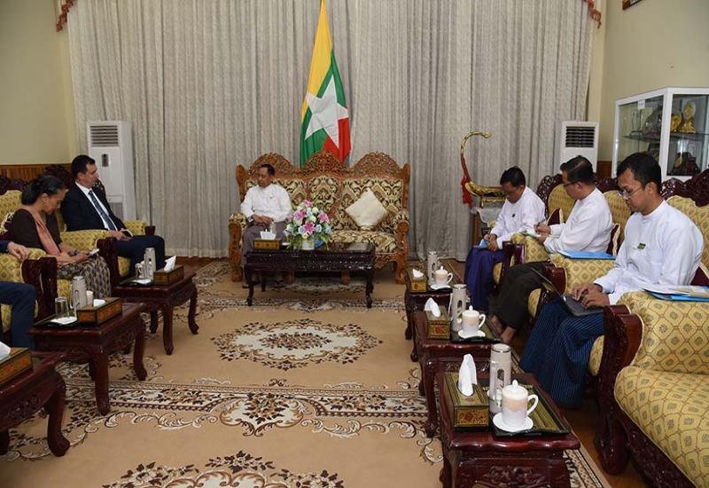 Deputy Minister for Commerce U Min Min received a delegation led by Mr Jiang Shan, Secretary of CPC Dehong Dai and Jingpo Prefectural Committee of Yunnan Province, at Office No 3 in Nay Pyi Taw yesterday.