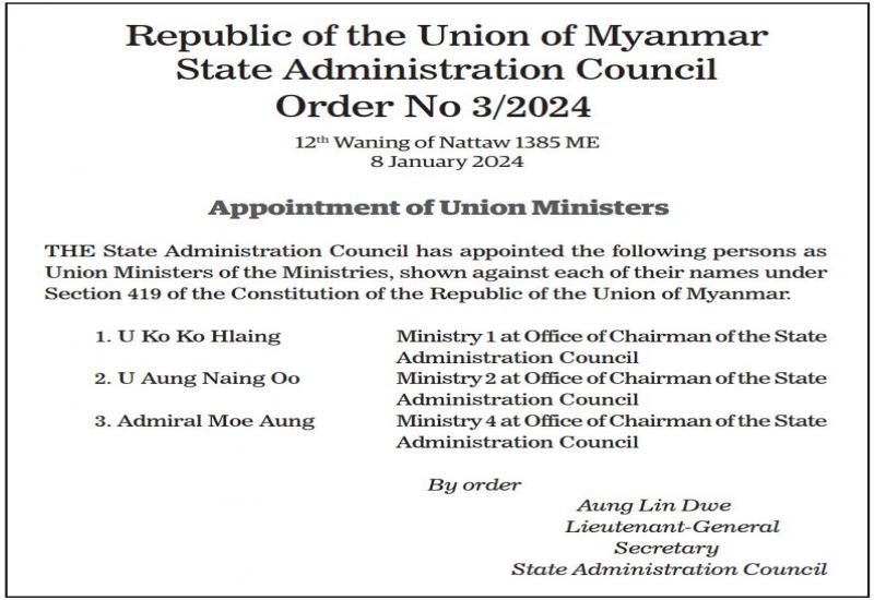 STATE Administration Council Member Deputy Prime Minister Union Minister for Defence Admiral Tin Aung San, accompanied by SAC members and Union Ministers, left for Kachin State by Tatmadaw aircraft yesterday to attend the 76th Kachin State Day ceremony that falls on 10 January 2024.