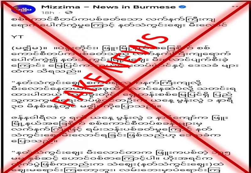 THERE has been false news circulating in the Development Media Group, a Rakhine news outlet, claiming that the Tatmadaw arrested approximately 60 civilians in Sittway, Rakhine State, on 7 January, using massive force.