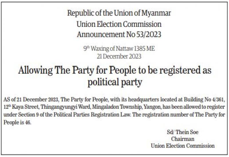 Allowing The Party for People to be registered as political party