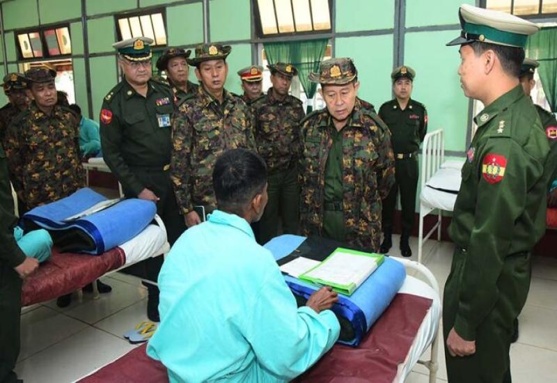 Vice-Chairman of the State Administration Council Deputy Commander-in-Chief of Defence Services Commander-in-Chief (Army) Vice-Senior General Soe Win, accompanied by his wife Daw Than Than Nwe, senior military officers from the Office of the Commander-in-Chief and officials, spoke words of honour and comforted officers, other ranks, Myanmar Police Force members and people’s militia members who were wounded in serving State defence and security duties, at the local military hospital in Lashio, Shan State (North), yesterday morning.
