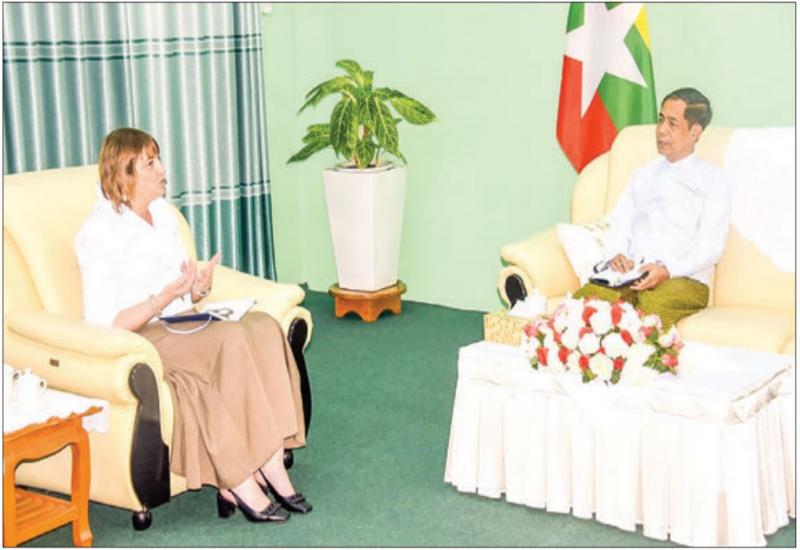 UNION Minister at the Union Government Office 2 U Ko Ko Hlaing received the delegation led by Ms Elena Ajmone Sessera, Resident Representative of the International Committee of the Red Cross at the Ministry of the Union Government Office 2 in Nay Pyi Taw yesterday.