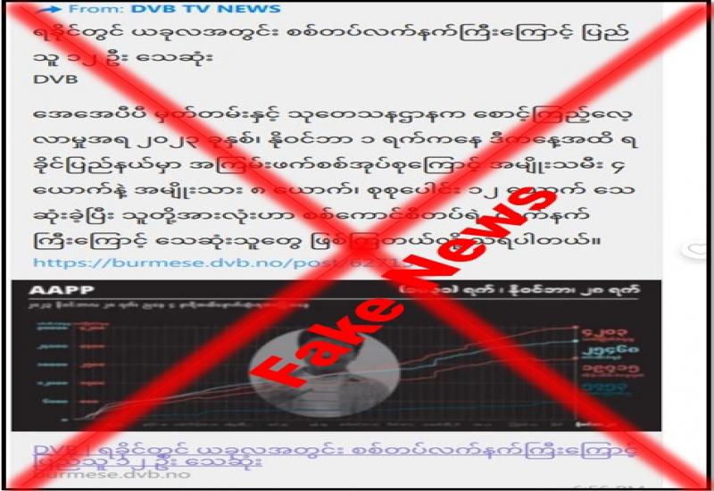 ANTI-GOVERNMENT media DVB has spread fake news, quoting the AAPP record and research division, that a total of 12 residents – four females and eight males – have died between 1 and 29 November due to the attacks of Tatmadaw in Rakhine State. Malicious media outlets create misinformation in various sectors, leading to instability and unrest in the country and causing disintegration between the people and Tatmadaw and misconceptions about Tatmadaw internationally.