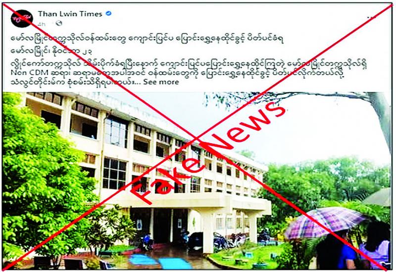 FALSE news and misinformation are circulating on social media, falsely claiming that the rector of Mawlamyine University issued a ban on faculty members from leaving the university premises. According to these inaccurate reports, an emergency meeting held on 16 November allegedly resulted in this restriction, as faculty members had relocated to be closer to their relatives due to concerns arising from a terrorist attack on Loikaw University in Kayah State, which led to the arrest of the rector and faculty members.