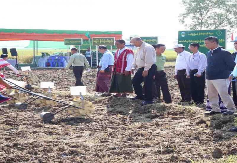 STATE Administration Council Members Mahn Nyein Maung and Khun San Lwin attended the sunflower seed and fertilizer presentation ceremony and seeding demonstration in Hpa-an Township.