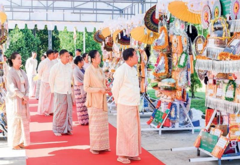 Families of the Office of Commander-in-Chief (Army, Navy and Air) held the 13th Kathina offering ceremony at Anawrahta Hall of the Office of the Commander-in-Chief (Army) yesterday morning, attended by Chairman of the State Administration Council Commander-in-Chief of Defence Services Senior General Min Aung Hlaing and his wife Daw Kyu Kyu Hla who donated Kathina robes and alms.