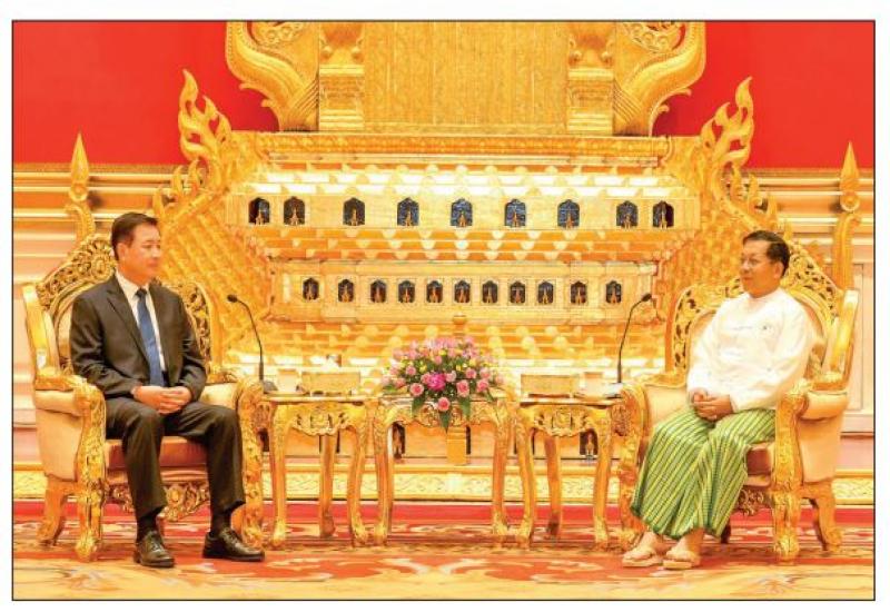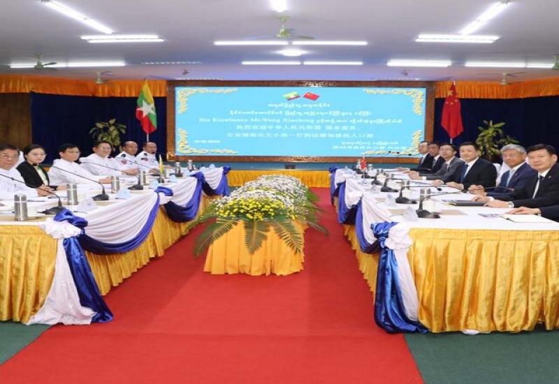 CHAIRMAN of the State Administration Council Prime Minister Senior General Min Aung Hlaing and member of the Secretariat of the Chinese Communist Party Central Committee State Councillor of the People’s Republic of China and Minister of Public Security Mr Wang Xiaohong held a talk on attacks of MNDAA insurgents on security camps in northeast region of Myanmar with attempts to deteriorate peace and stability in the region and bilateral cooperation measures at the Credentials Hall of the Office of the SAC Chairman in Nay Pyi Taw yesterday.