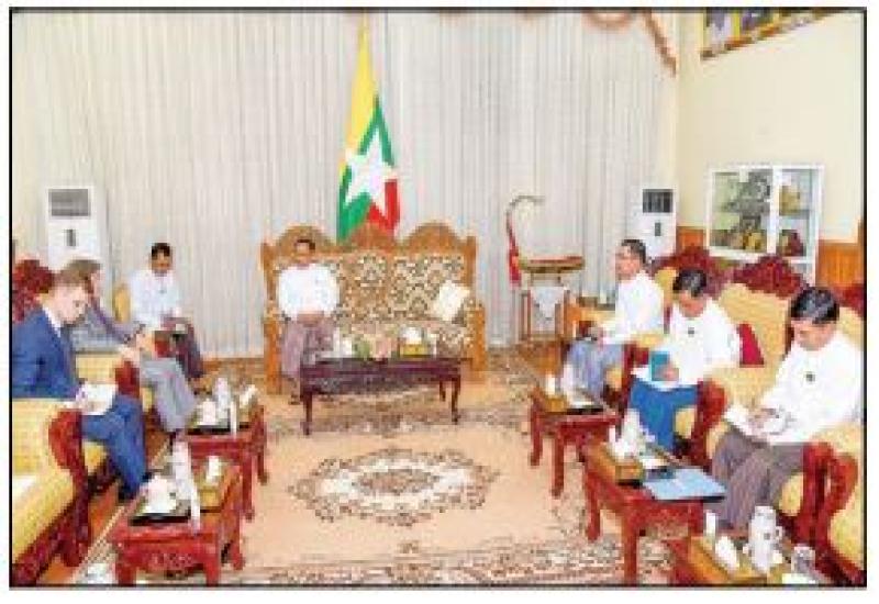 SAC Member Deputy Prime Minister Union Minister for Defence Admiral Tin Aung San received Russian Ambassador to Myanmar Mr Iskander Azizov at the ministry office yesterday afternoon.