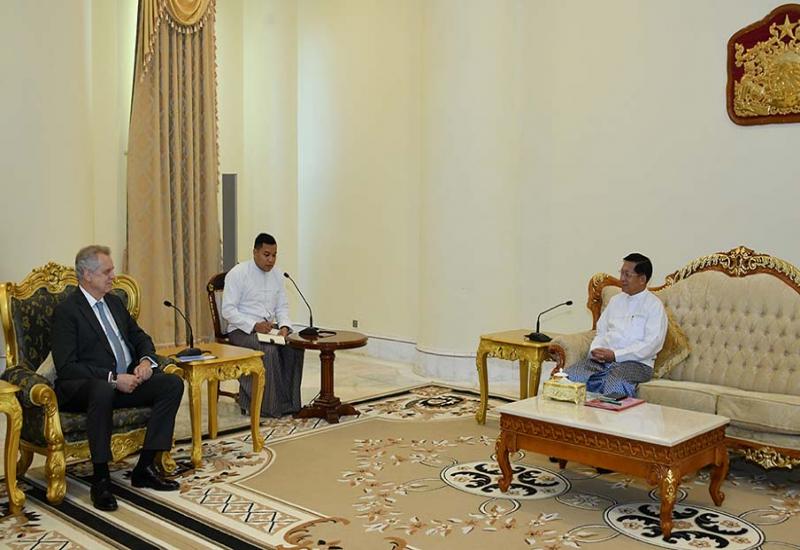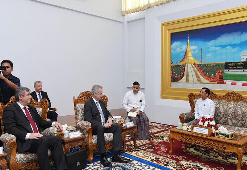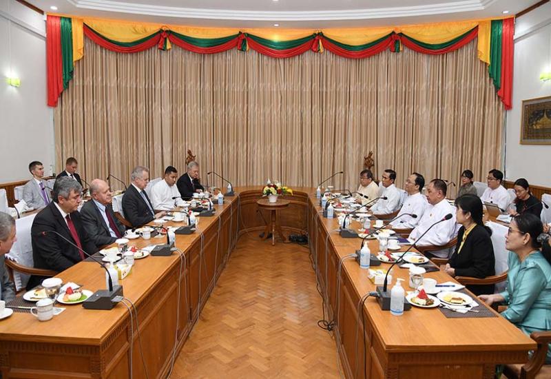 NAY Pyi Taw Council Chair Mayor U Than Tun Oo received a delegation led by Mr Grigoriev Evgeny Dmitrievich, Chairman of the External Relations Committee, member of the Government of St Petersburg, Russia, at the council office yesterday.
