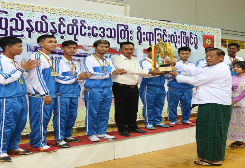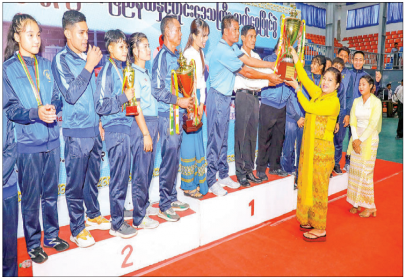 MEMBER of the State Administration Council Porel Aung Thein awarded a championship trophy to the Mandalay Region team in the Inter-State/Region Traditional Chinlone Championship 2023 yesterday.