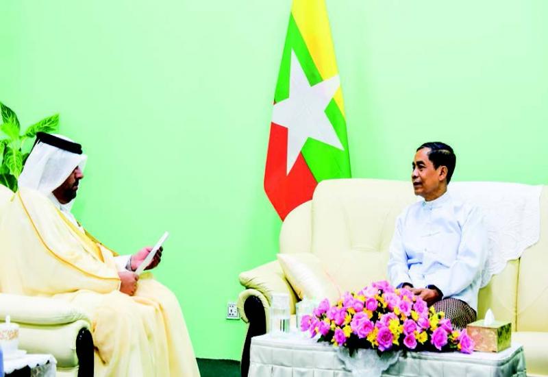 U Ko Ko Hlaing, Union Minister at the Union Government Office 2 received Dr Rashid Abdulla AL-Kuwari, Minister/Charge d’Affaires ai of the Embassy of the State of Qatar and his delegation at the ministry in Nay Pyi Taw yesterday.