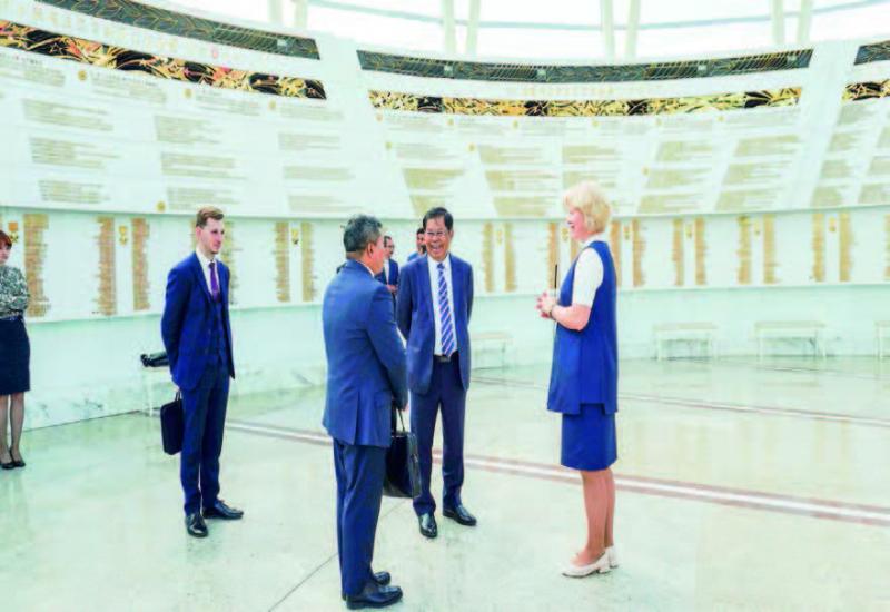Deputy Prime Minister and Union Minister for Foreign Affairs U Than Swe, who paid a working visit to the Republic of Belarus at the invitation of Minister of Foreign Affairs of the Republic of Belarus Mr Sergei Aleinik, arrived at the Minsk International Airport on the evening of 14 September. At the airport, the Myanmar delegation was welcomed by Myanmar Consul-General in Minsk U Moe Kyaw Thu, staff of Myanmar Consulate-General and responsible officials from the Belarusian Ministry of Foreign Affairs.
