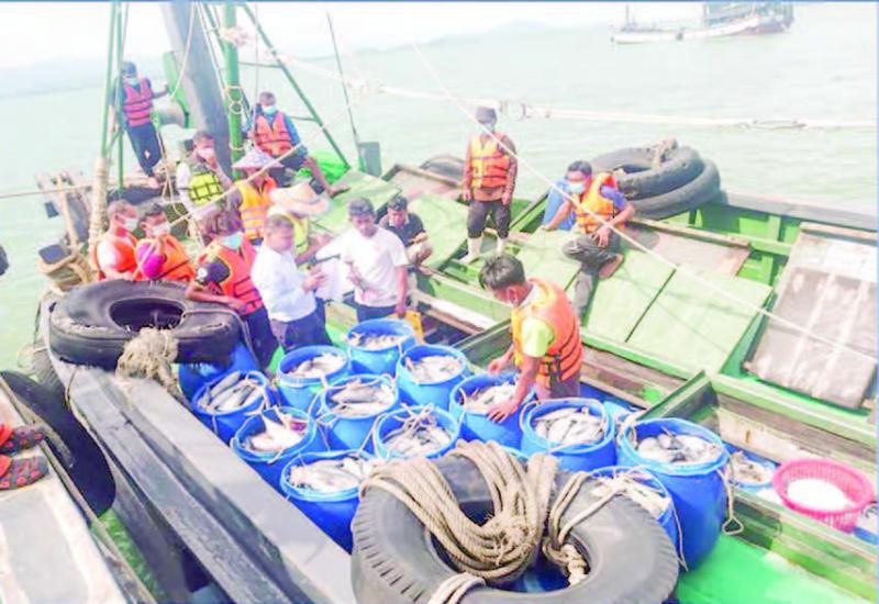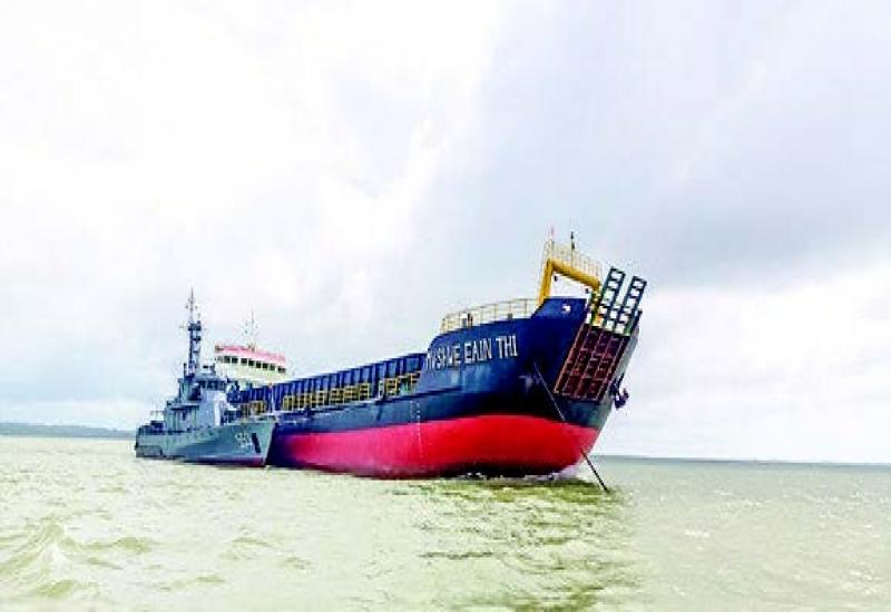 MEMBERS of Tatmadaw (Navy) conducting security operations in Myanmar waters near Hainggyikyun, Ayeyawady Region, rushed to the scene after receiving a notification that a cargo ship had tilted about 10 miles southwest of Hainggyikyun around 11 pm on 10 September. The cargo ship was identified as the MV Shwe Eain Thi, which had departed from Yangon and headed to Sittway.