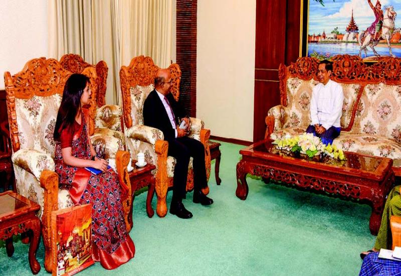 UNION Minister for International Cooperation U Ko Ko Hlaing received Mr Vinay Kumar, Ambassador Extraordinary and Plenipotentiary of the Republic of India to the Republic of the Union of Myanmar, yesterday in Nay Pyi Taw.