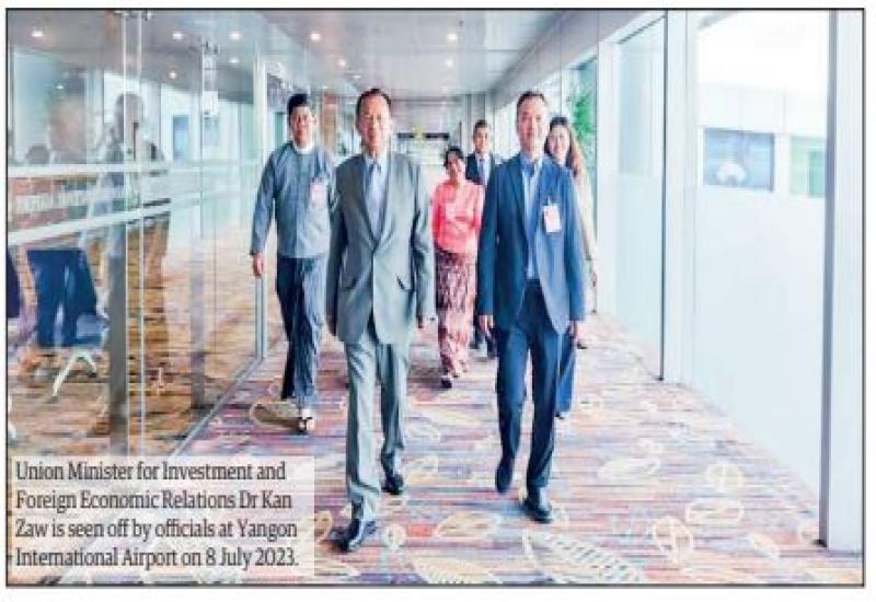 AT the invitation of the China International Development Cooperation Agency (CIDCA), Dr Kan Zaw, Union Minister for Investment and Foreign Economic Relations, left Yangon by flight yesterday morning to attend the First High-Level Conference of the Forum on Global Action for Shared Development, which will be held from 9 to 10 July in Beijing, and the 2023 Workshop on Ocean Economy Development and Management, which will be held on 12 July 2023, in Xiamen.
