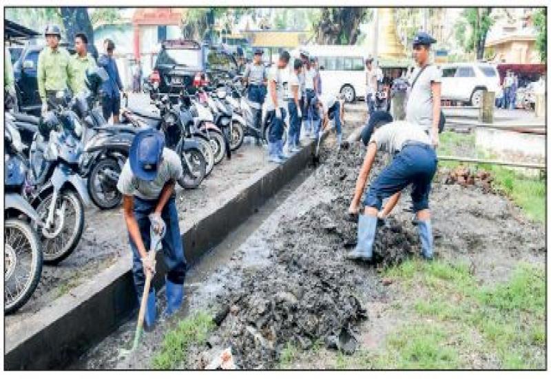 RAKHINE State Chief Minister U Htein Lin who is also Chairman of the Rakhine State Natural Disaster Management Committee accompanied by deputy ministers, state ministers and other officials viewed a collective cleaning in Sittway Township. They also observed rehabilitation and prevention activities for dengue fever.