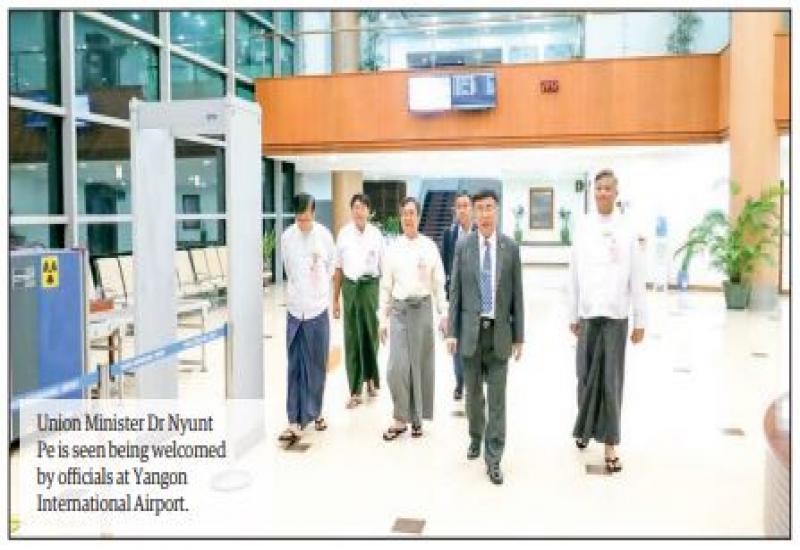 UNION Minister for Education Dr Nyunt Pe and Deputy Permanent Secretary Dr Kyaw San Win arrived back in Yangon on 11 June by air after attending Education Forum held in the Kazan in the Russian Federation and were welcomed back by officials from the Ministry of Education.