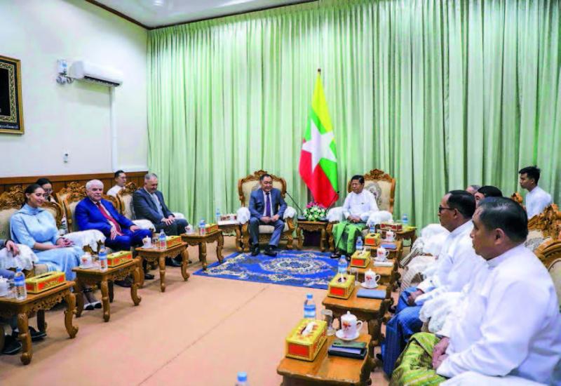 UNION Election Commission Chairman U Thein Soe received a delegation led by Sholban Kara-Ool, Deputy Chairman of the State Duma, Federal Assembly of the Russian Federation, at the reception hall of the UEC office in Nay Pyi Taw yesterday morning.