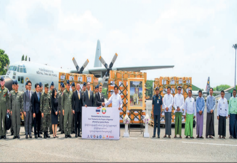THE Thai private sector, the Thai Red Cross Society and the Thai-Myanmar Friendship Association in Thailand donated humanitarian aid of temporary tents, shelters, solar lamps, rescue kits, insecticidal mosquito nets, and foodstuffs including canned fish and instant noodles by two Royal Thai Air Force C-130 planes which arrived at Yangon International Airport yesterday.