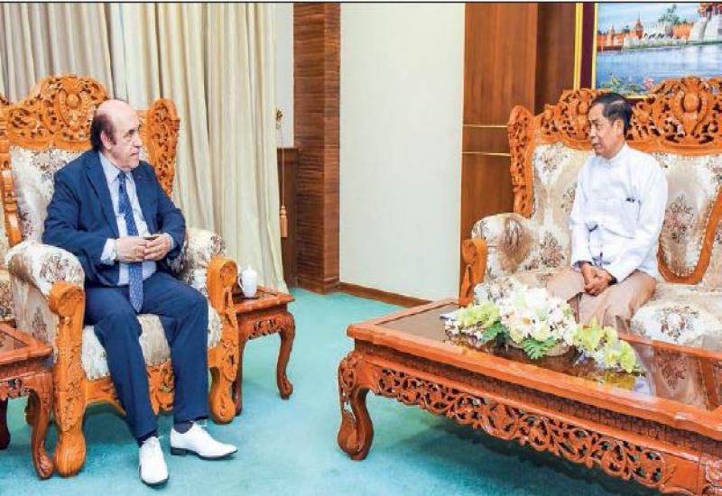 UNION Minister for International Cooperation U Ko Ko Hlaing received former president of Foreign Correspondent Club of Japan (FCCJ) Mr Khaldon Azhari at the Parlour of the Minister’s office, Ministry of International Cooperation, yesterday evening.