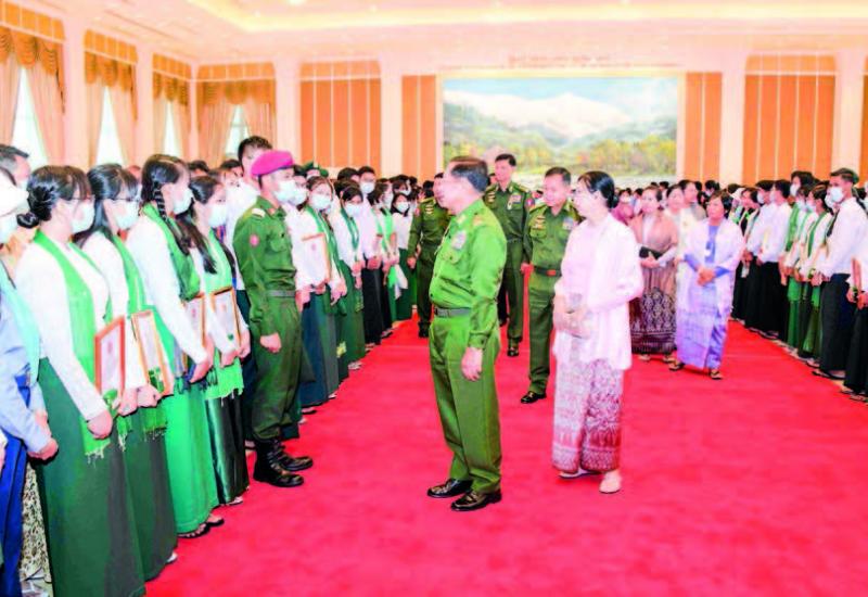 STUDENTS must try their best to become Myanmar youths who can uplift the prestige of their families and their school as well as the State. They have to try hard to become good students in the student life and good teachers with discipline and good leaders in the future as they would be leaders of the nation at a time, said Chairman of the State Administration Council Commander-in-Chief of Defence Services Senior General Min Aung Hlaing at the ceremony to award offspring of military personnel, war veterans and military-substitute civilian servants for their outstanding and other multiple outstanding youths in the 2019-20 and 2021-22 academic year matriculation examinations at Zeyathiri Beikman in Nay Pyi Taw yesterday afternoon.
