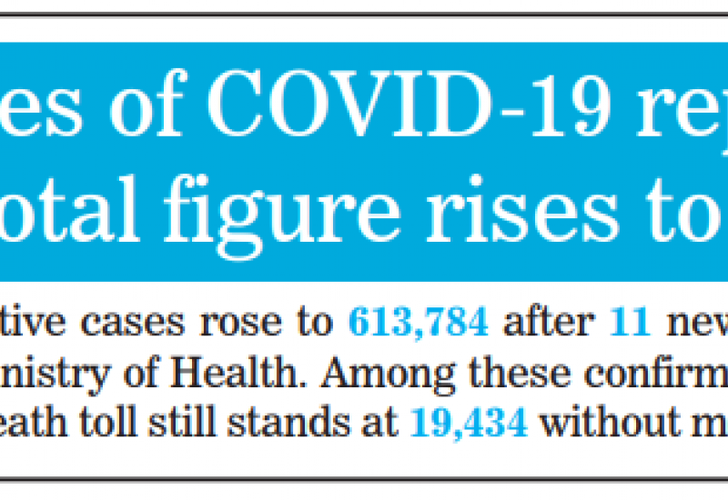 11 new cases of COVID-19 reported on 14 July, total figure rises to 613,784