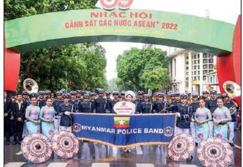 THIRTY-SIX entertainers led by Police Lt-Col Zaw Naing Tun from the Police Band and Entertainment Division, Police Training Department of the Myanmar Police Force, Ministry of Home Affairs, left Yangon for Hanoi, Viet Nam, on 7 July on a special flight of Myanmar National Airlines. They were welcomed by officials from the Myanmar Embassy to Vietnam in Hanoi.
