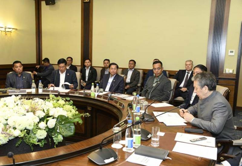 CHAIRMAN of the State Administration Council Commander- in-Chief of Defence Services Senior General Min Aung Hlaing held a working meeting with dignitaries from the Ministry of Defence, on behalf of Minister of Defence of the Russian Federation Army General Sergey Kuzhugetovich Shoigu at the parlour of the Ministry of Defence of the Russian Federation on 11 July.
