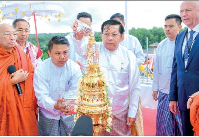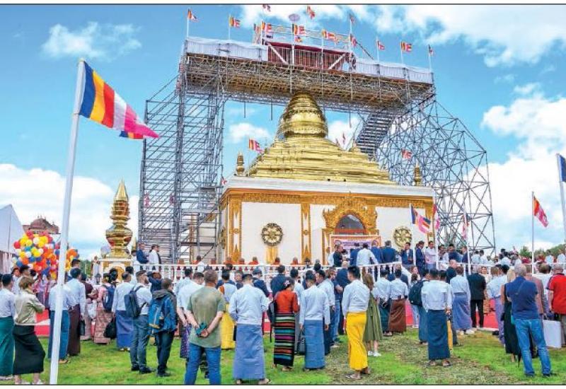 CEREMONY to hoist a diamond orb, and a pennant-shaped vane atop Shwezigon replica pagoda in Ethnomir world culture city in Kaluga of Moscow in the Russian Federation was held in conjunction with the consecration ceremony on the full moon day of Waso 1384 ME,