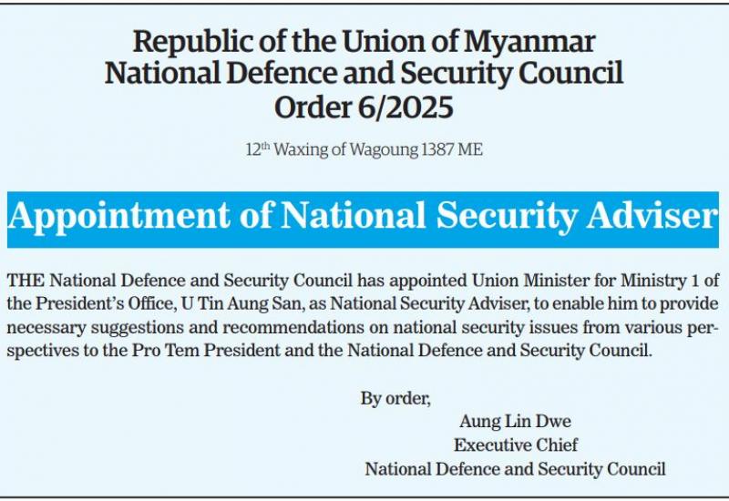 ON the occasion of the 5th anniversary of the establishment of the diplomatic relations between the Republic of the Union of Myanmar and the Republic of Nicaragua, which falls on 6 August 2025, Senior General Min Aung Hlaing, Chairman of the State Security and Peace Commission of the Republic of the Union of Myanmar, exchanged congratulatory message with Mr Daniel Ortega Saaverdra and Mrs Rosario Murillo, Co-Presidents of the Republic of Nicaragua.