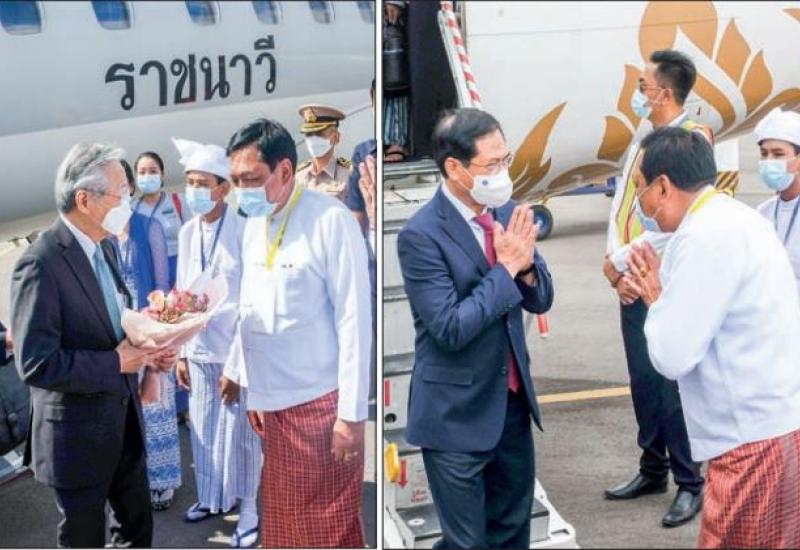 A delegation led by Mr Prak Sokhonn, Special Envoy of the Alternate Chair of ASEAN on Myanmar Deputy Prime Minister Minister of Foreign Affairs and International Cooperation of Cambodia visited Shwedagon Pagoda in Yangon yesterday morning.