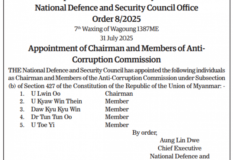 Republic of the Union of Myanmar National Defence and Security Council Office Order 8/2025