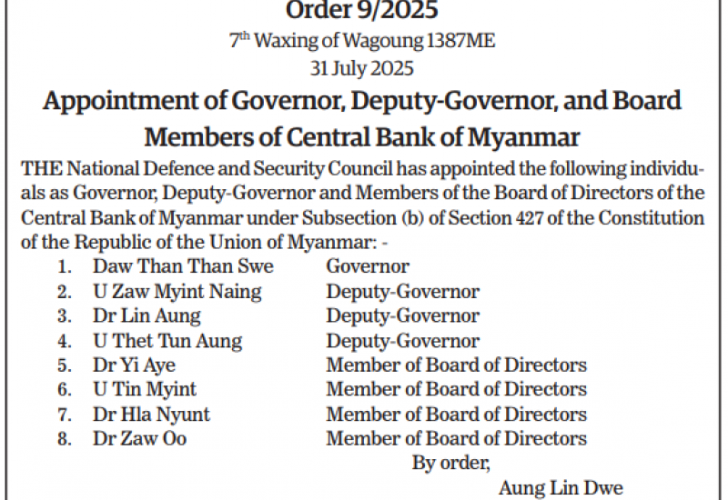 Republic of the Union of Myanmar National Defence and Security Council Office Order 9/2025