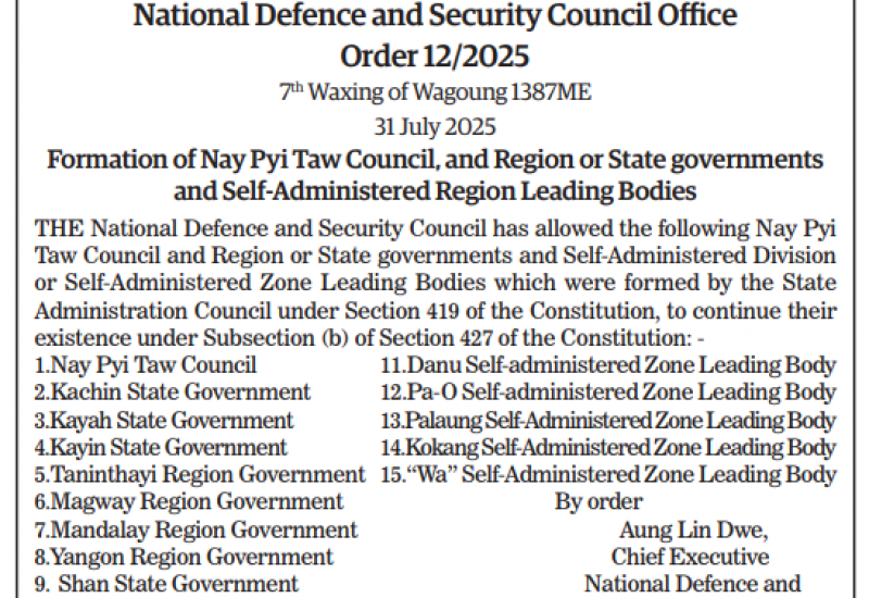 Republic of the Union of Myanmar National Defence and Security Council Office Order 7/2025