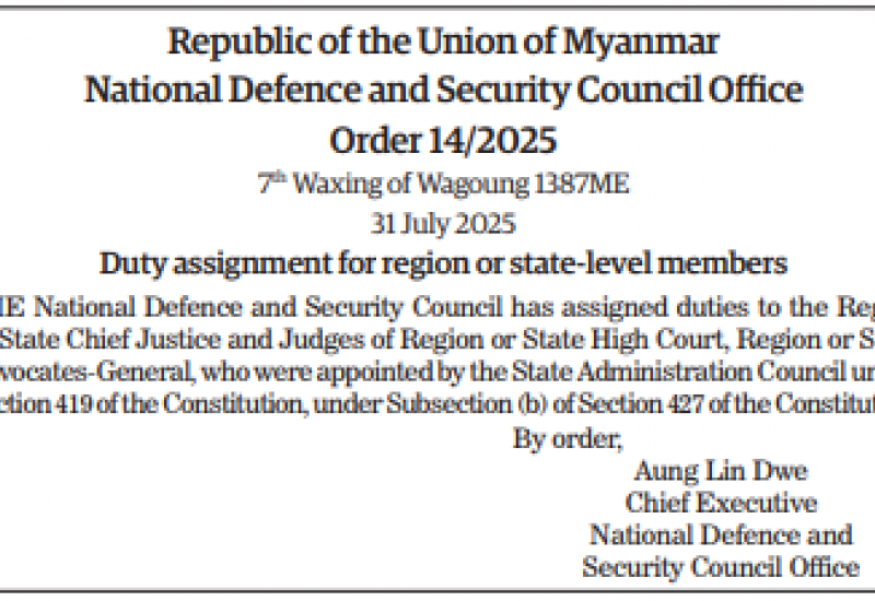 Republic of the Union of Myanmar National Defence and Security Council Office Order 14/2025