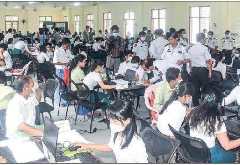 UNION Election Commission Chairman U Thein Soe inspected the work processes to verify the ground population census for the accuracy of the basic voter lists at Thuwunna Youth Training Centre in Yangon together with relevant regional officials yesterday.