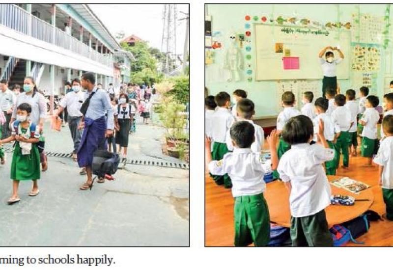 STUDENTS are now happily and peacefully back in school in Mandalay Region as all schools across the country are reopened on 2 June for the 2022-2023 Academic Year following the health protocols for the COVID-19 issued by the Ministry of Health.