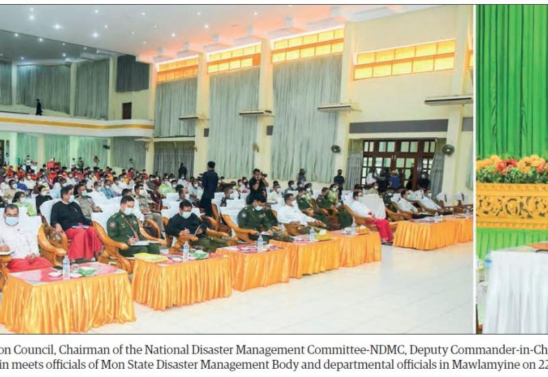 VICE Chairman of the State Administration Council, Chairman of the National Disaster Management Committee-NDMC, Deputy Commander-in-Chief of Defence Services Commander-in-Chief (Army) Vice-Senior General Soe Win met with the people affected by natural disaster due to the heavy rains from 20 May in Mawlamyine, Chaungzon, Thanbyuzayat, Thaton and Paung townships, officials of the Mon State Disaster Management bodies and department officials in Mawlamyine yesterday.