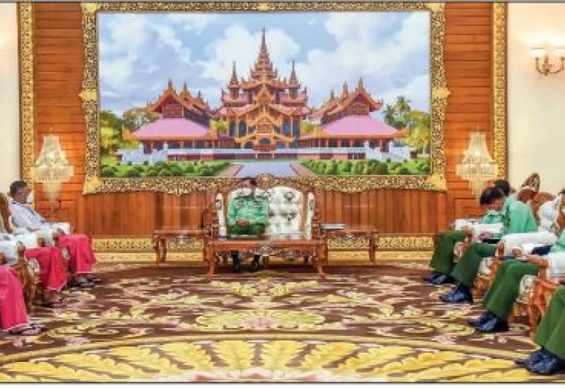 CHAIRMAN of the State Administration Council Commander-in-Chief of Defence Services Senior General Min Aung Hlaing received a peace delegation led by Vice-Chairman Nai Aung Min of the New Mon State Party (NMSP) at the parlour of Bayintnaung Villa in Nay Pyi Taw yesterday morning to talk about peace issues.
