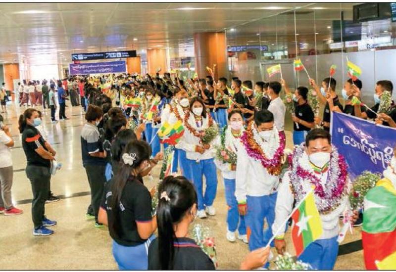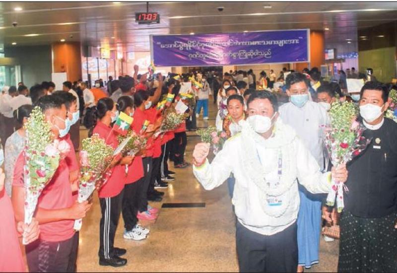 THE Myanmar sports contingent, which competed in the 31st Southeast Asian Games which is being held from 12 to 23 May in Hanoi and other cities, returned to Yangon International Airport at 4 pm yesterday by air.