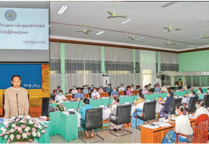 UNION Minister U Tin Htut Oo for Agriculture, Livestock and Irrigation met officials of the associations affiliated with the Republic of the Union of Myanmar Federation of Chambers of Commerce and Industry (UMFCCI) on 17 May at Yuzana guesthouse on Natmauk Street, Bahan Township, Yangon, regarding public-private partnership in each sector for an increase in agricultural production and export growth.