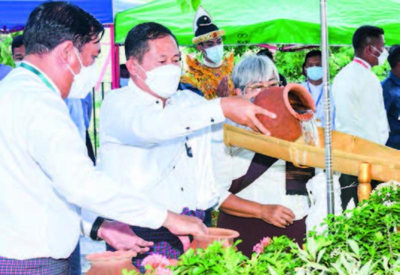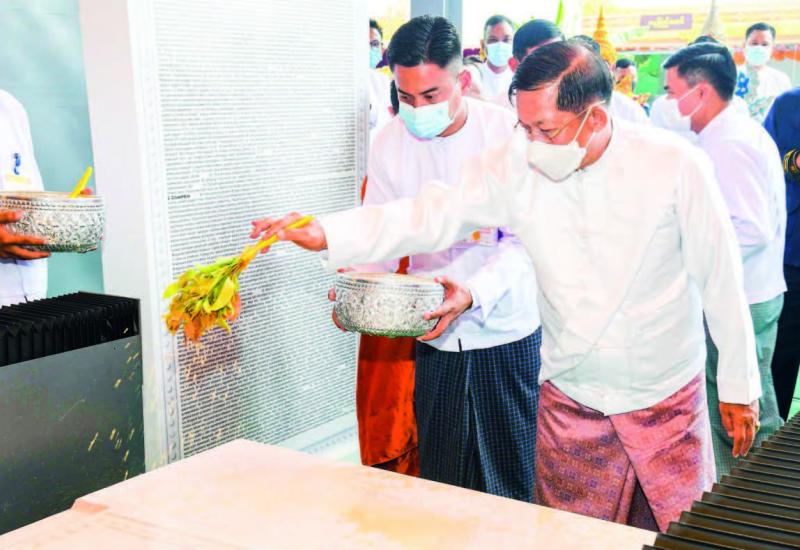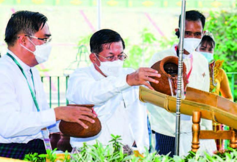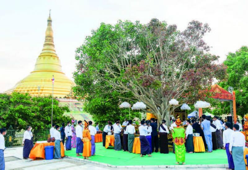 THE 14th Maha Mingala ceremony of pouring water on banyan trees in the month of Kason involved in the 12 seasonal festivals of Myanmar, which falls on the full moon day of Kason, 1384 ME, also called the Buddha’s Day, took place at Maha Bodhi banyan trees in the northward in the precinct of Uppatasanti Pagoda in Nay Pyi Taw yesterday evening. Chairman of the State Administration Council Prime Minister Senior General Min Aung Hlaing, SAC members and wives poured water on Maha Bodhi Banyan trees.