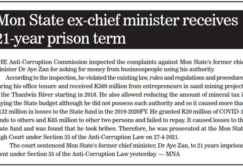 UNION Minister for Planning and Finance U Win Shein attended the 25th ASEAN+3 Finance Ministers and Central Bank Governors meeting jointly chaired by the People’s Republic of China and Cambodia via a virtual system yesterday.