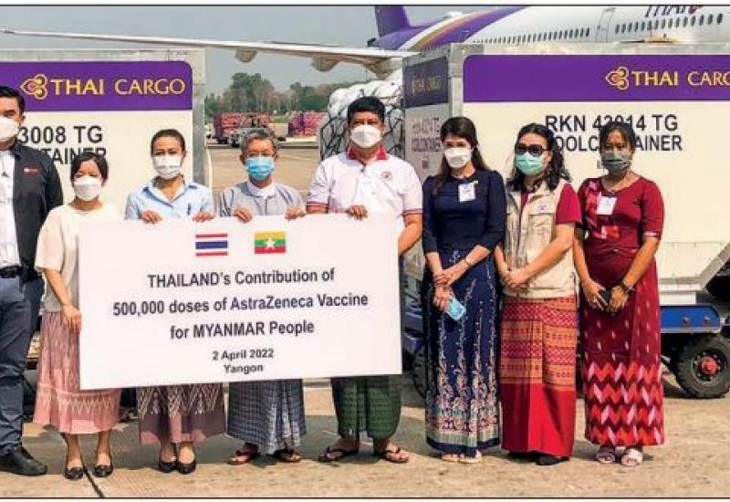 OF the one million doses of COVID-19 AstraZeneca brand donated by Thailand to the people of Myanmar for use in the COVID-19 vaccination project, 500,000 doses and 500,000 needles arrived at Yangon International Airport by Thai Airways at 9:15 am yesterday.