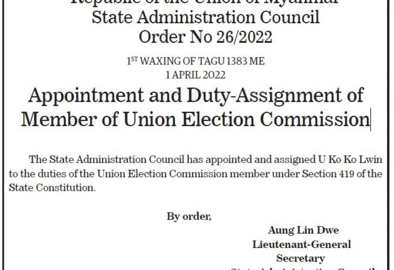 Appointment and Duty-Assignment of Member of Union Election Commission