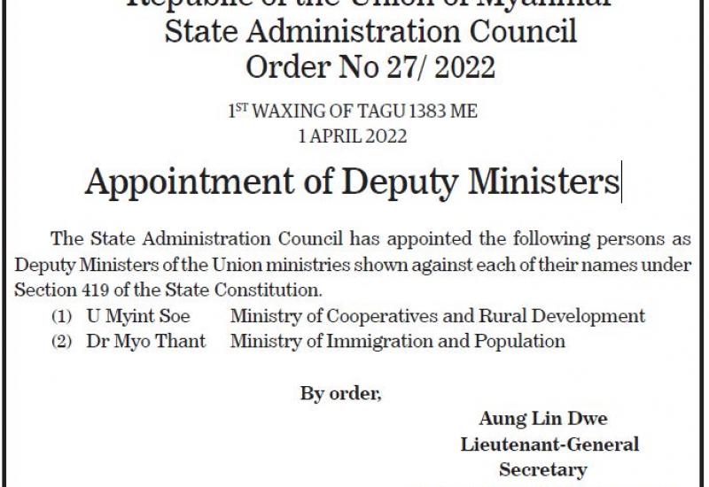 AT the invitation of Mr Wang Yi, State Councilor and Minister of Foreign Affairs of the People’s Republic of China, U Wunna Maung Lwin, Union Minister for Foreign Affairs, paid a working visit to Huangshan, Anhui Province of the People’s Republic of China from 31 March 2022 to 2 April 2022. The Myanmar delegation led by the Union Minister for Foreign Affairs arrived back in Nay Pyi Taw from China by air at 2 pm on 2 April 2022.