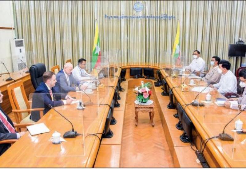 UNION Minister for Planning and Finance U Win Shein met a delegation led by Head of the Secretariat of the Heavy Enterprise Cooperation of the Eurasian Economic Commission-EEC Mr Andrey Diansky yesterday at 10 am at the meeting hall of the Union Minister for Planning and Finance in Nay Pyi Taw.