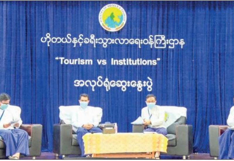 UNION Minister for Hotels and Tourism Dr Htay Aung attended the workshop on “Tourism and Institutions” held at the Jade Hall of the Ministry yesterday morning.