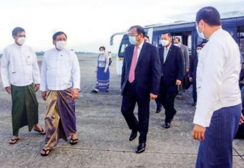 MR Prak Sokhonn, Deputy Prime Minister, Minister of Foreign Affairs and International Cooperation of Cambodia and special envoy of ASEAN Chair left Yangon on the morning of 23 March 2022. He was seen off at the Yangon International Airport by U Kyaw Myo Htut, Deputy Minister for Foreign Affairs and senior officials from the Ministry of Foreign Affairs.